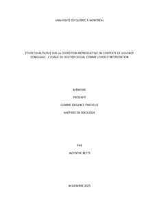 « Étude qualitative sur la coercition reproductive en contexte de violence conjugale : l'usage du soutien social comme levier d'intervention » Mémoire.