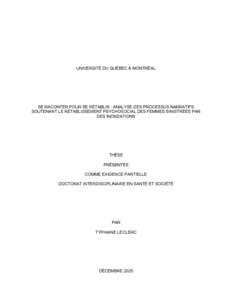 « Se raconter pour se rétablir : analyse des processus narratifs soutenant le rétablissement psychosocial des femmes sinistrées par des inondations » Thèse.