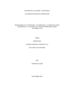 « Renseigner et convaincre : les défis de la communication condéenne à l'apogée de la Fronde princière (mars-octobre 1652) » Thèse.