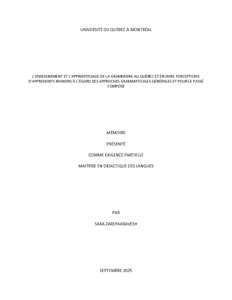 « L'enseignement et l'apprentissage de la grammaire au Québec et en Iran : perceptions d'apprenants iraniens à l'égard des approches grammaticales générales et pour le passé composé » Mémoire.