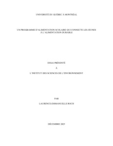 Mondialement, on observe divers mouvements éducatifs encourageant les jeunes à renouer avec l’origine des aliments qu’ils consomment et à adopter des habitudes alimentaires saines et écoresponsables (Boire, 2020). Dès lors, il devient pertinent d'examiner comment certaines initiatives d’alimentation scolaire pourraient matérialiser de tels objectifs en remaniant leurs programmes d’alimentation scolaire au profit de la durabilité et de l’éducation alimentaire. Ce projet d’essai s’intéresse à comment la mesure alimentaire montréalaise La Grande-Bouffe pourrait intégrer davantage les principes de l’éducation alimentaire et de la transition vers la durabilité au sein de son programme. Puis, quels seraient les enjeux et les opportunités associés à cette intégration? Par une synthèse de la littérature sur les programmes d’alimentation scolaire qui intègrent les principes de la durabilité et de l’éducation alimentaire, les meilleures pratiques seront identifiées et leur application à la Grande-Bouffe sera ensuite discutée. À la lumière des tendances remarquées au sein des programmes d’alimentation scolaire, trois axes d’intervention seront à développer pour la Grande-Bouffe : l’éducation alimentaire, l’alimentation durable et la gestion des matières résiduelles. Néanmoins, des défis pratiques liés à la mise en oeuvre de ces changements, tels que des contraintes budgétaires, seront mis en lumière.