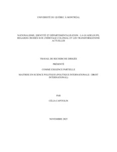 Ce travail de recherche dirigée porte sur la situation politique, juridique et identitaire de la Guadeloupe. Il s’intéresse aux conséquences de la départementalisation, aux tensions entre l’État français et les revendications locales, ainsi qu’aux héritages de la colonisation, notamment à travers l’article 73 de la Constitution et la loi du 19 mars 1946, qui instaurent le principe d’assimilation législative. Il met en lumière les limites du modèle républicain dans les DROM, en analysant la dépendance économique, la centralisation administrative et la marginalisation culturelle. À travers l’étude des mouvements nationalistes, des réformes institutionnelles et des inégalités persistantes, ce travail de recherche propose une lecture critique du statut de la Guadeloupe au sein de la République française.