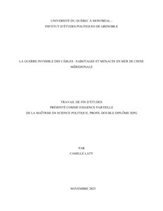 Les câbles sous-marins de télécommunications sont des infrastructures critiques et stratégiques qui assurent la transmission de données Internet essentielles au bon fonctionnement de toute société interconnectée. Ces dernières années, les actes de sabotage visant ces câbles ont augmenté. En 2023 et 2025, les incidents survenus à Taïwan ont attiré l’attention sur cette tendance émergente qui s’inscrit dans les méthodes dites « en zone grise ». Or, la littérature scientifique porte peu d’attention aux attaques volontaires soutenues ou perpétrées par un État contre ces câbles, et encore moins aux réactions des acteurs visés par ces actes de sabotage. Ce travail de recherche contribue donc à combler cette lacune en étudiant les cas survenus en Asie du Sud-Est, en mer de Chine méridionale et, plus particulièrement, à Taïwan. Les cas taïwanais sont marqués par de sérieux soupçons envers la Chine comme auteur des dommages, illustrant ainsi les méthodes chinoises en zone grise, mais aussi la concurrence numérique sino-américaine dans la région. Les fonds marins deviennent ainsi de plus en plus le théâtre de la compétition entre les grandes puissances. Cela souligne la nécessité d’étudier les stratégies de sécurisation des câbles dans un contexte international où la supériorité technologique et le contrôle de l’information sont des enjeux stratégiques. À travers une synthèse des connaissances, il sera démontré que les câbles sous-marins sont désormais perçus non seulement comme des infrastructures critiques devant être protégées contre des menaces extérieures, mais également comme des vecteurs d’influence et de menace.