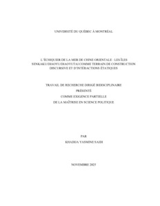 Saidi, Khadija Yasmine (2025). « L’échiquier de la mer de Chine orientale : les îles Senkaku/Diaoyu/Diaoyutai comme terrain de construction discursive et d’interactions étatiques » Travail dirigé. Montréal (Québec, Canada), Université du Québec à Montréal, Maîtrise en science politique.