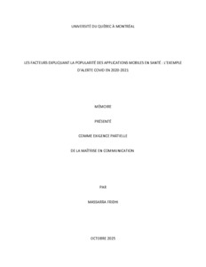 « Les facteurs expliquant la popularité des applications mobiles en santé : l'exemple d'Alerte COVID en 2020-2021 » Mémoire.