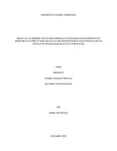 « Impact de la pandémie sur la santé mentale d'un échantillon de résidents en médecine du Québec et mise en place d'une intervention de yoga pour pallier les difficultés psychologiques de cette population » Thèse.