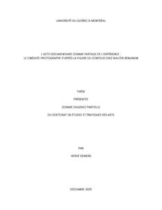 « L'acte documentaire comme partage de l'expérience : le cinéaste-photographe d'après la figure du conteur chez Walter Benjamin » Thèse.