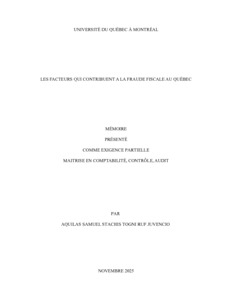 « Les facteurs qui contribuent à la fraude fiscale au Québec » Mémoire.