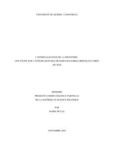 « L'internalisation de la frontière : une étude sur l'intégration des transfuges nord-coréens en Corée du Sud » Mémoire.