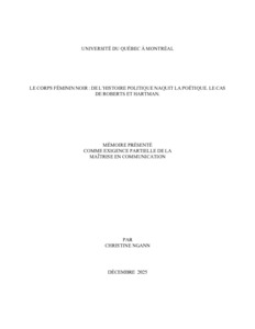 « Le corps féminin noir : de l’histoire politique naquit la poétique : le cas de Roberts et Hartman » Mémoire.