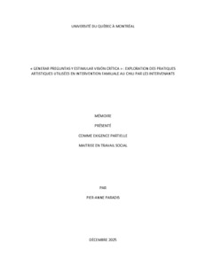 « « Generar preguntas y estimular vision critica » : exploration des pratiques artistiques utilisées en intervention familiale au Chili par les intervenants » Mémoire.