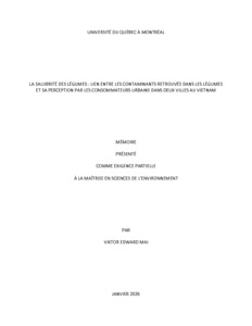« La salubrité des légumes : lien entre les contaminants retrouvés dans les légumes et sa perception par les consommateurs urbains dans deux villes au Vietnam » Mémoire.