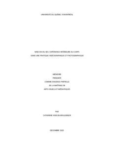 « Mise en jeu de l'expérience intérieure du corps dans une pratique vidéographique et photographique » Mémoire.