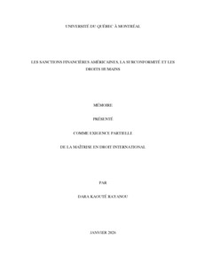 Dara, Kaouté Rayanou (2026). « Les sanctions financières américaines, la surconformité et les droits humains » Mémoire. Montréal (Québec, Canada), Université du Québec à Montréal, Maîtrise en droit international.