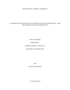 Fournier, Marian (2025). « La représentation muséale et historique des transidentités : vers une muséologie transaffirmative » Travail dirigé. Montréal (Québec, Canada), Université du Québec à Montréal, Maîtrise en muséologie.