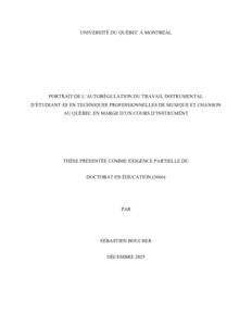 « Portrait de l'autorégulation du travail instrumental d'étudiant.es en techniques professionnelles de musique et chanson au Québec en marge d'un cours d'instrument » Thèse.