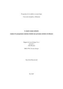Zeini Hassanvand, Sara (2025). « Le musée comme mémoire : analyser les programmes muséaux destinés aux personnes atteintes de démence » Travail dirigé. Montréal (Québec, Canada), Université du Québec à Montréal, Maîtrise en muséologie.