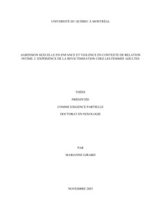 « Agression sexuelle en enfance et violence en contexte de relation intime : l’expérience de la revictimisation chez les femmes adultes » Thèse.
