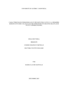 « Caractéristiques personnelles et réussite éducative à la première session d'études collégiales des personnes étudiantes selon leur statut générationnel » Thèse.