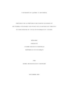 « Précision de la prévision des indices de bases et sectoriels Standard and Poor's de la bourse de Toronto et indicateurs du cycle économique du Canada » Mémoire.