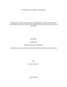 « Représentations linguistiques d'immigrants créolophones peu scolarisés dans un contexte d'apprentissage du français langue seconde » Mémoire.