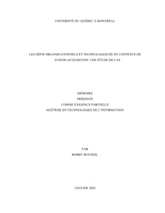 Roussel, Bobby (2026). « Les défis organisationnels et technologiques en contexte de fusion-acquisition : une étude de cas » Mémoire. Montréal (Québec, Canada), Université du Québec à Montréal, Maîtrise en technologies de l'information.
