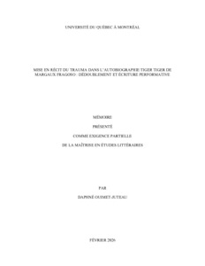 « Mise en récit du trauma dans l'autobiographie Tiger Tiger de Margaux Fragoso : dédoublement et écriture performative » Mémoire.