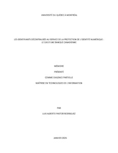 « Les identifiants décentralisés au service de la protection de l'identité numérique : le cas d'une banque canadienne » Mémoire.