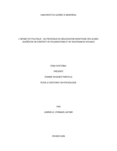 « L'intime est politique : les processus de négociation identitaire des jeunes québécois en contexte de polarisations et de souffrances sociales » Thèse.