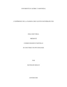 « L'expérience de la passion chez les psychothérapeutes » Thèse.