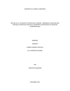 « Mettre au lit les gestes et sortir par la fenêtre : émergence d'une écriture poétique à partir des traces de l'interprète en processus de création chorégraphique » Mémoire.