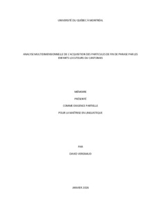 « Analyse multidimensionnelle de l'acquisition des particules de fin de phrase par les enfants locuteurs du cantonais » Mémoire.