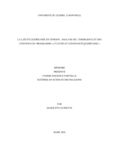 « La laïcité québécoise en tension : analyse de l'émergence et des contenus du programme « Culture et citoyenneté québécoise » » Mémoire.