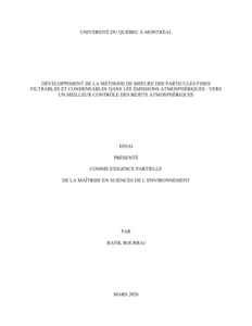 « Développement de la méthode de mesure des particules fines filtrables et condensables dans les émissions atmosphériques : vers un meilleur contrôle des rejets atmosphériques » Essai.