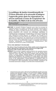 « La politique de justice transitionnelle de l'Union africaine et la nécessité d'intégrer l'approche genre dans les réparations au niveau national à l'aune de l'expérience de la Gambie, du Mali et de la Côte d'Ivoire ».