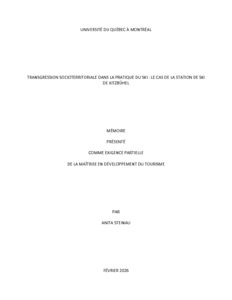 Steinau, Anita (2026). « Transgression socioterritoriale dans la pratique du ski : le cas de la station de ski de Kitzbühel » Mémoire. Montréal (Québec, Canada), Université du Québec à Montréal, Maîtrise en développement du tourisme.