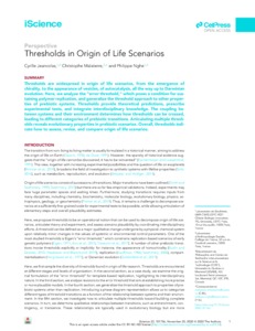 « Thresholds in Origin of Life Scenarios ».