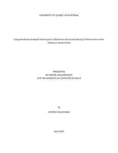 « Using sentiment analysis techniques to determine the social identity of persons from their writing on social media » Mémoire.