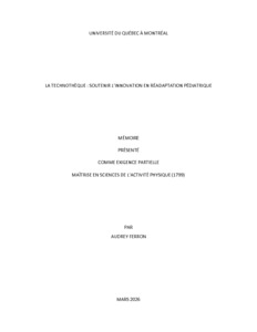 « La Technothèque : soutenir l'innovation en réadaptation pédiatrique » Mémoire.